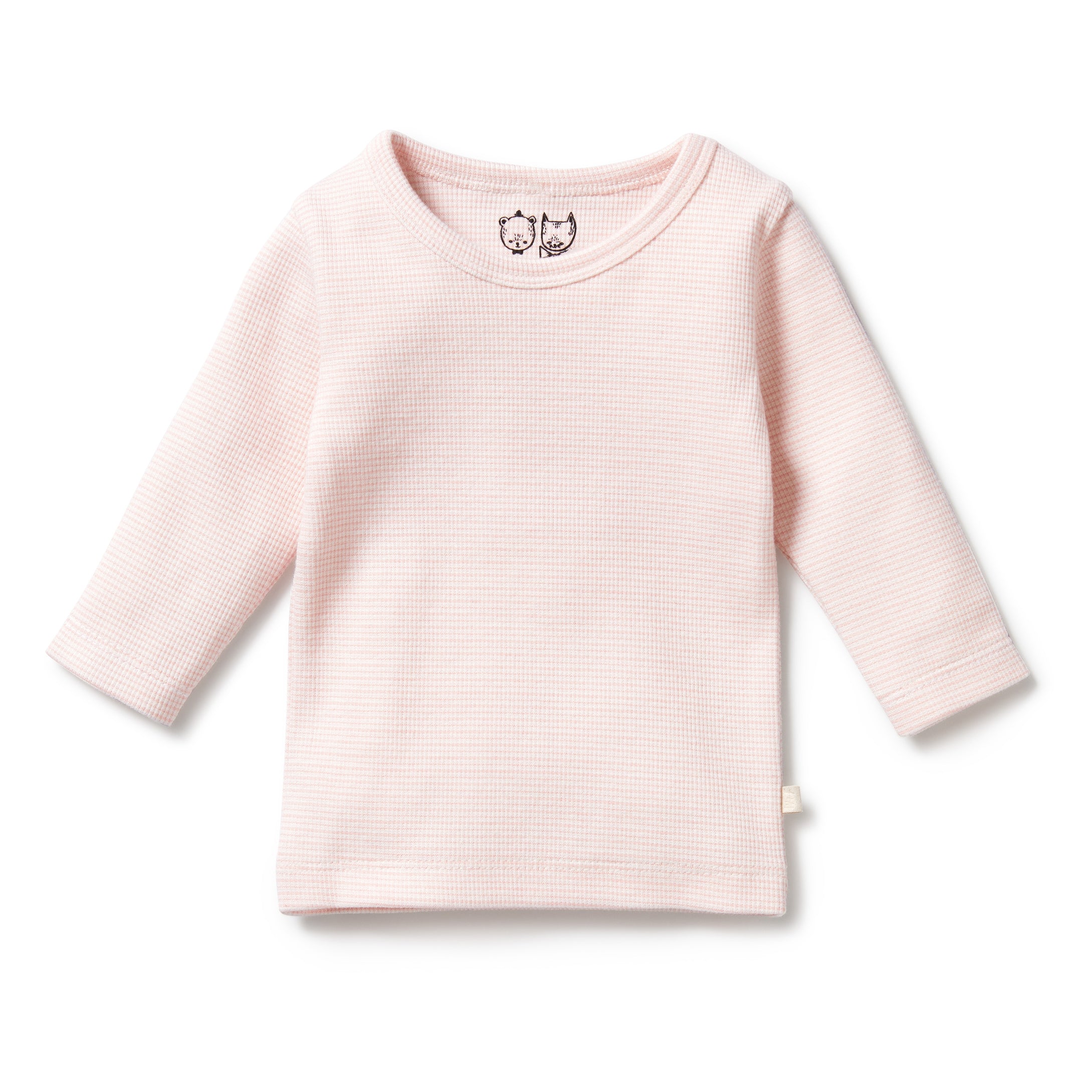 This long sleeved organic stretch top with snap button neckline is made with GOTS certified organic cotton rib.