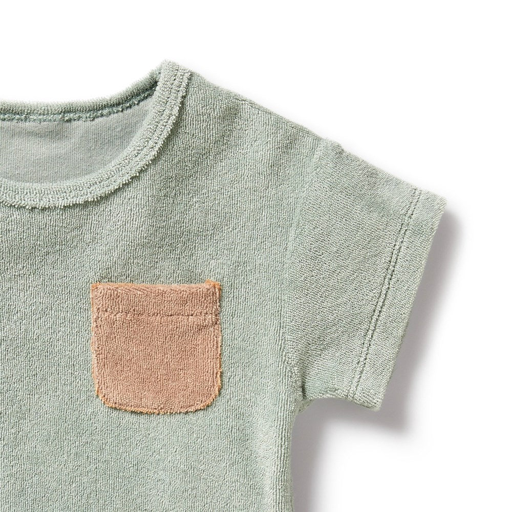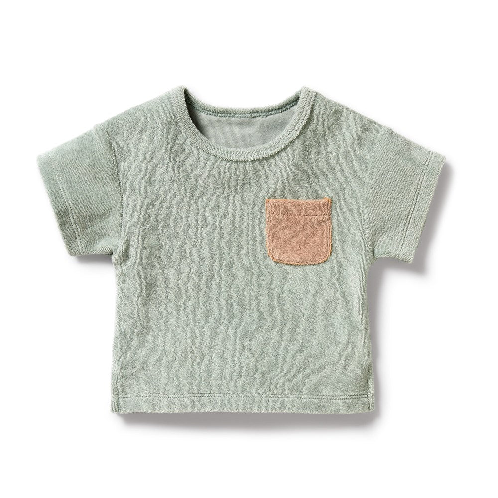 This tee will have your little ones looking cute and feeling comfy in no time! Made from soft organic cotton terry towelling, the roomy fit and crew neck make it perfect for playtime. Plus, the contrast pocket adds an extra touch of fun.