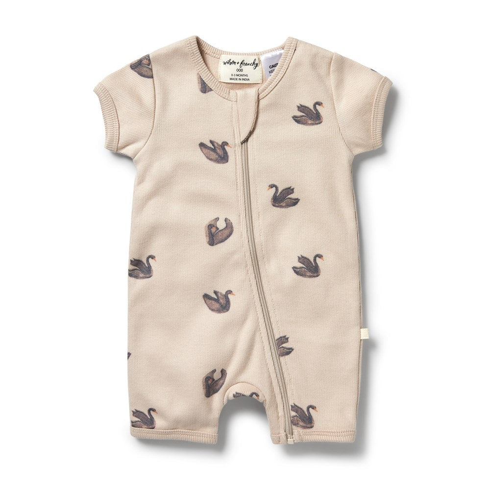 Organic Stripe Rib Zipsuit