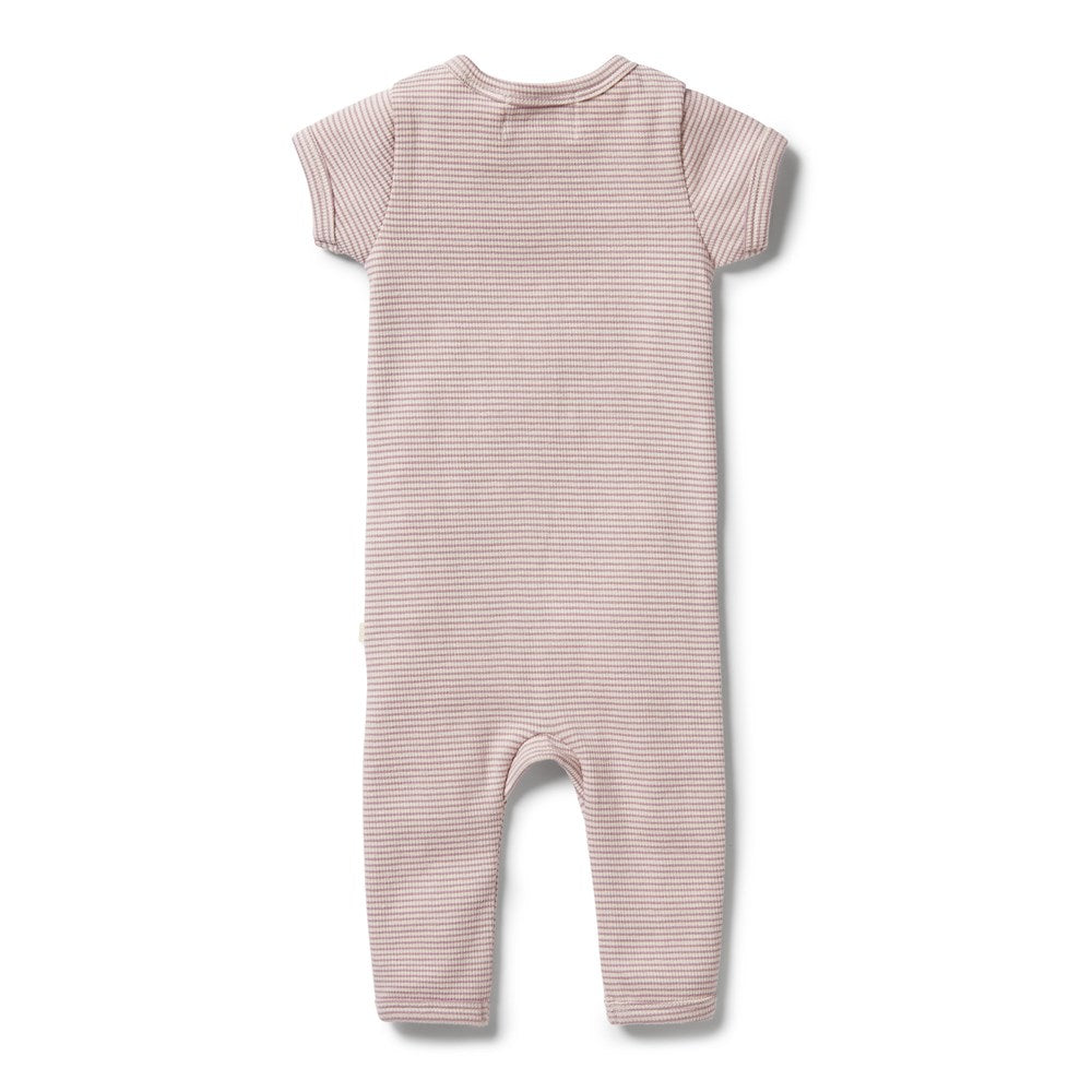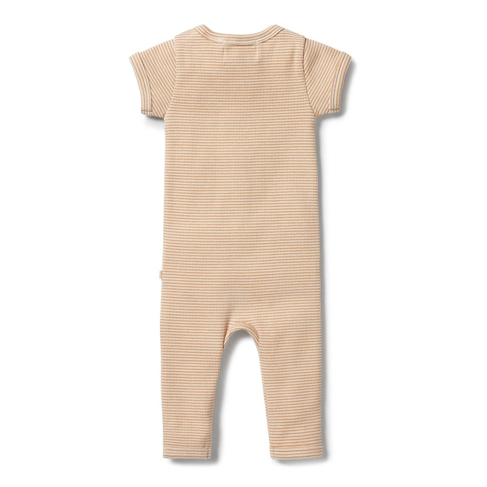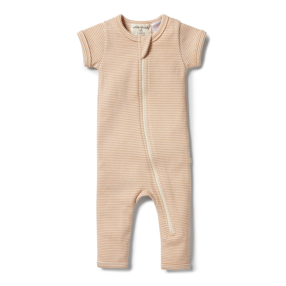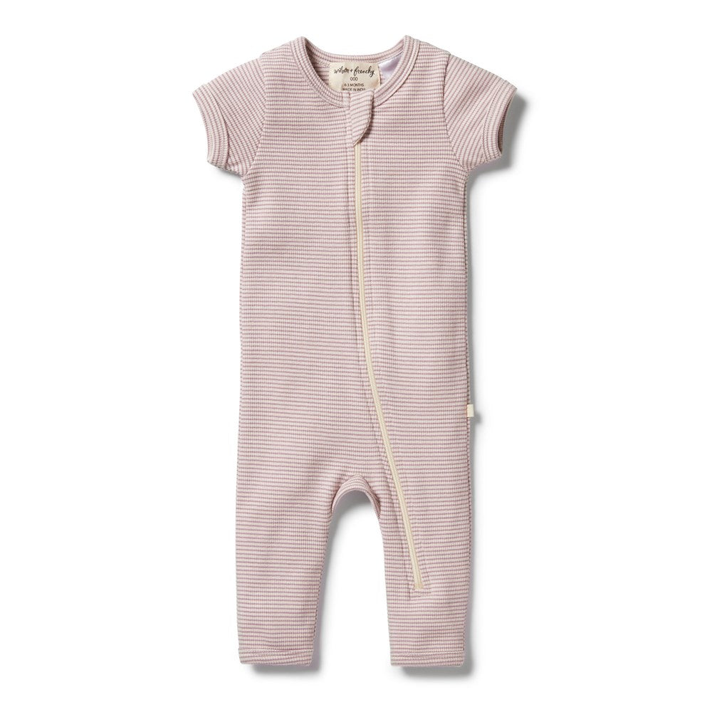Organic Stripe Rib Zipsuit