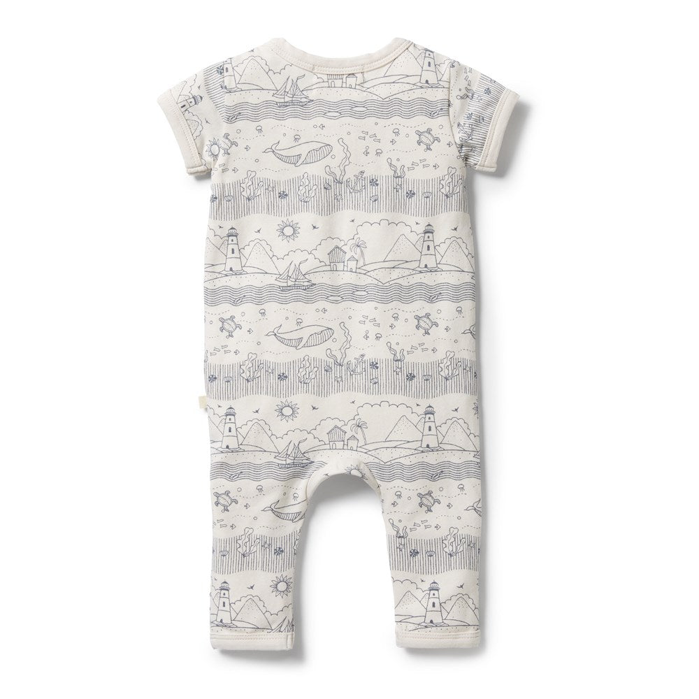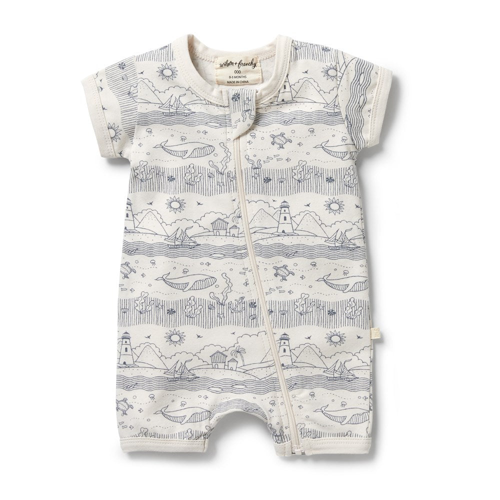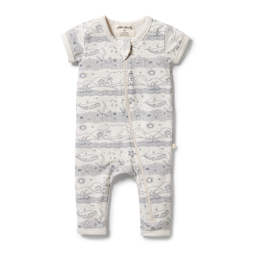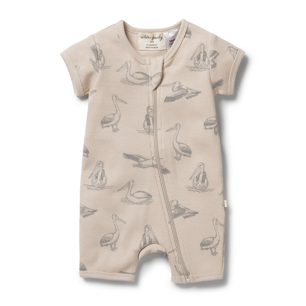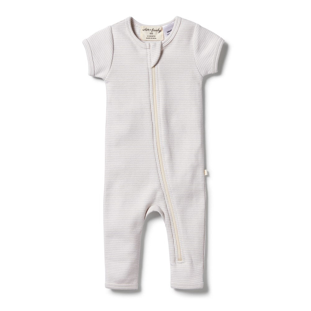 Organic Stripe Rib Zipsuit