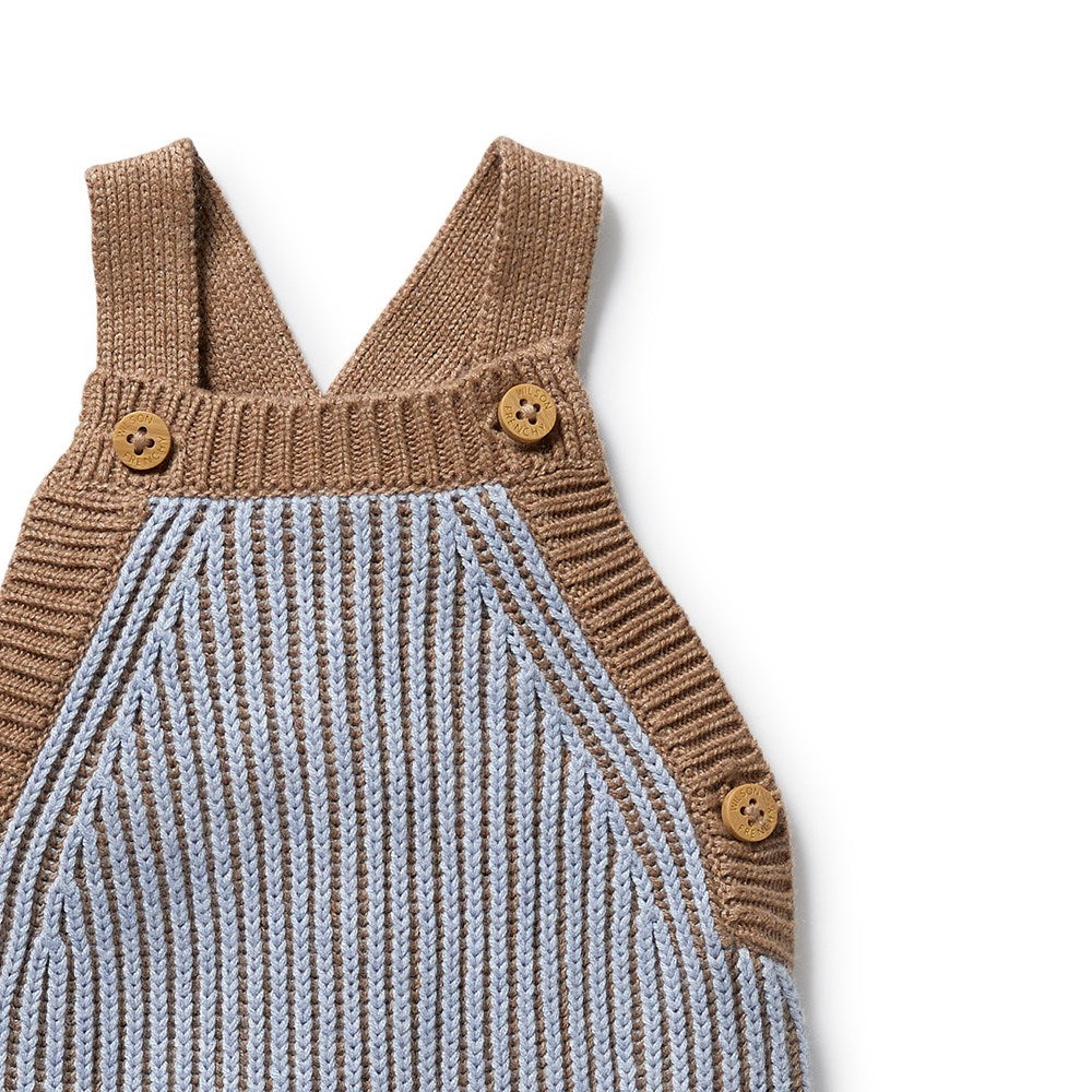 This full length knit overall with ruffle, features button up shoulder straps and a snap leg opening for quick and easy nappy changes. Made from a beautiful blend of Cotton, Bamboo and Wool it's a style you'll want in every colour! Pair back with an organic long sleeve top for an adorable winter layered look.