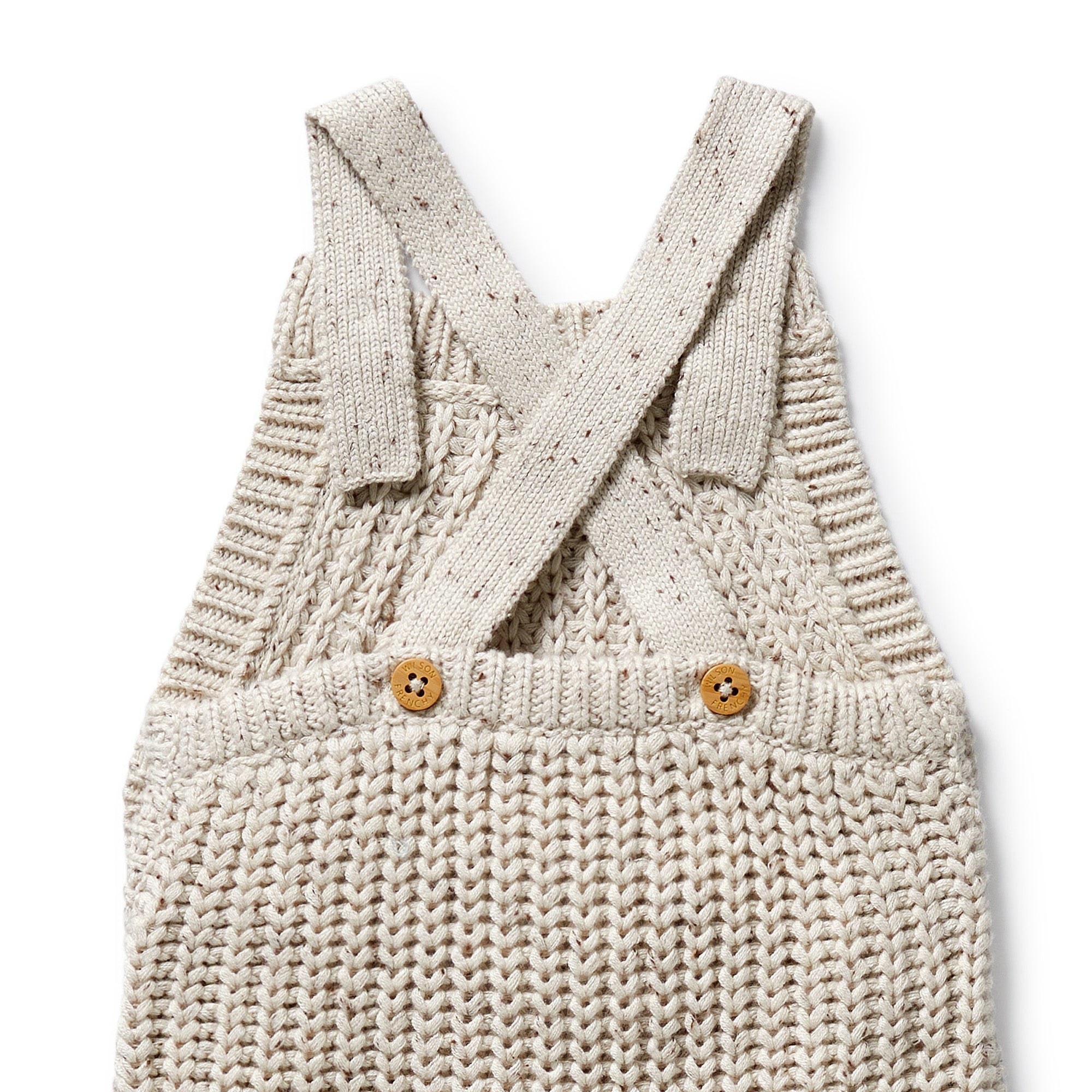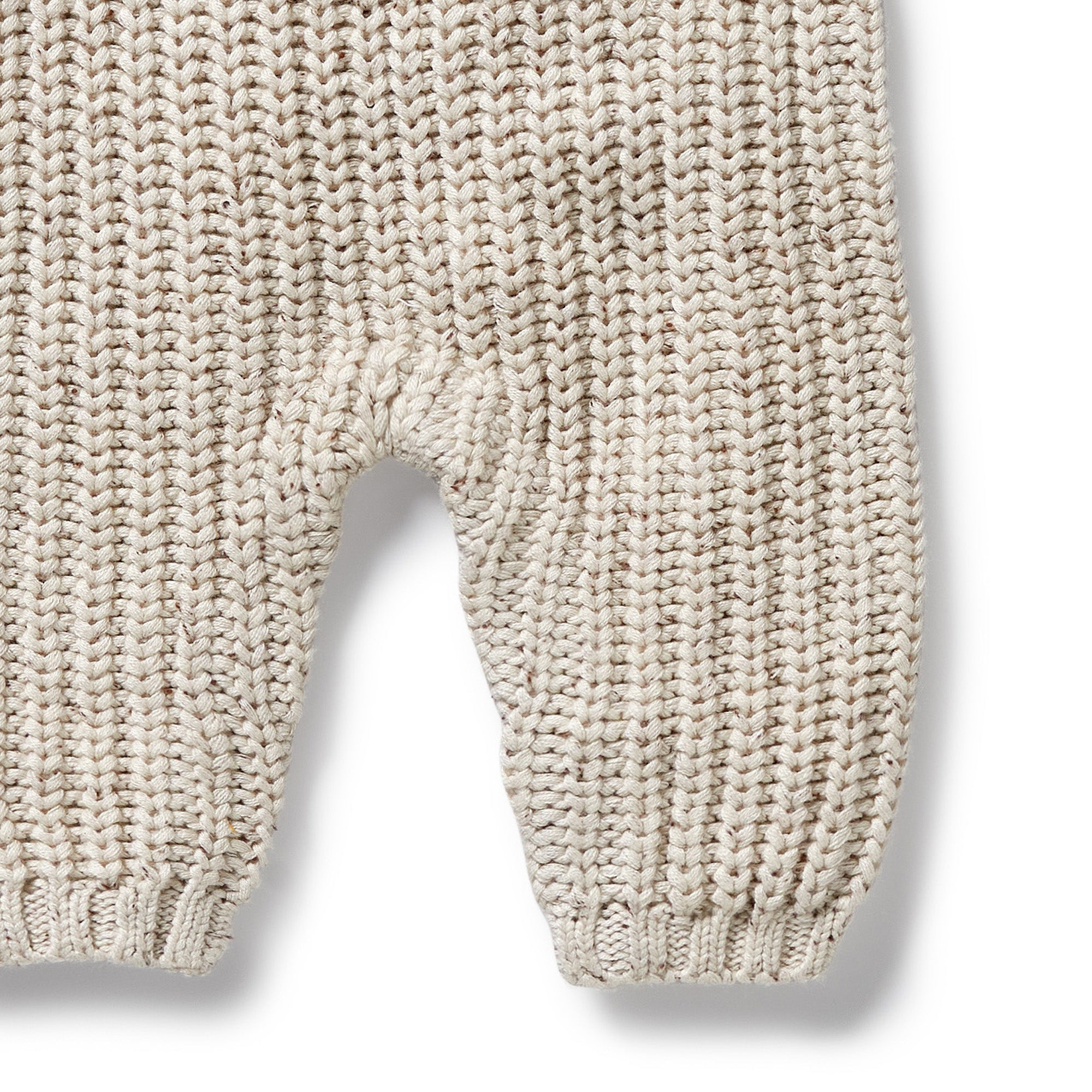 This full-length knit overall features button up shoulder straps and a snap leg opening for quick and easy nappy changes. Made from a beautiful blend of cotton, bamboo and wool it's a style you'll want in every colour! Pair back with an organic long sleeve top for an adorable winter layered look.