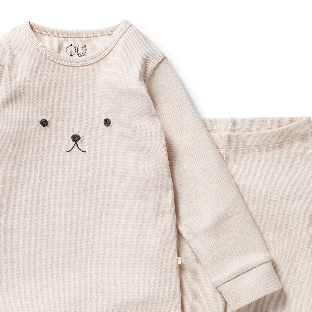 Snuggle up in style with our GOTS-certified organic cotton 2-piece pyjama set! Made from soft, snug-fitting 2x2 rib fabric, this set includes a long-sleeved top with playful embroidery on the front and full-length pants with an elasticated waist. Perfect for a cosy and comfortable night's sleep.