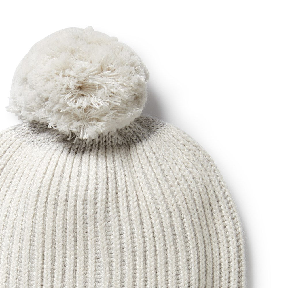 Grey Melange and Oatmeal Organic Knitted Ribbed Hat