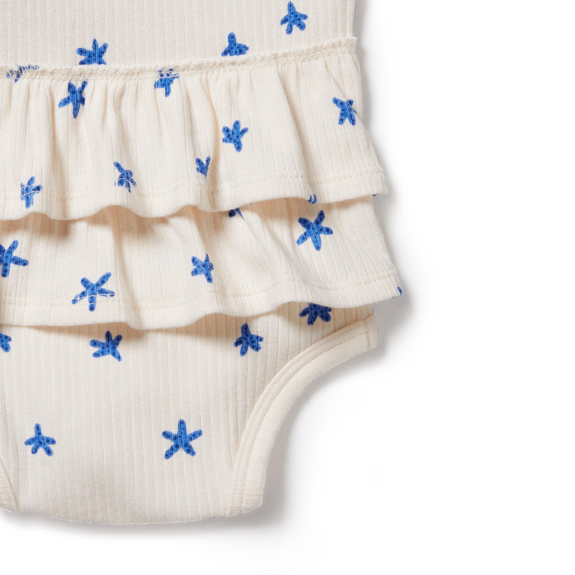 With a soft, comfortable fit and cute ruffle detail at the bottom, this ruffle detail bodysuit is both fun and functional. Featuring an all-over illustration, snap crotch for quick and easy nappy changes, and fully machine washable.