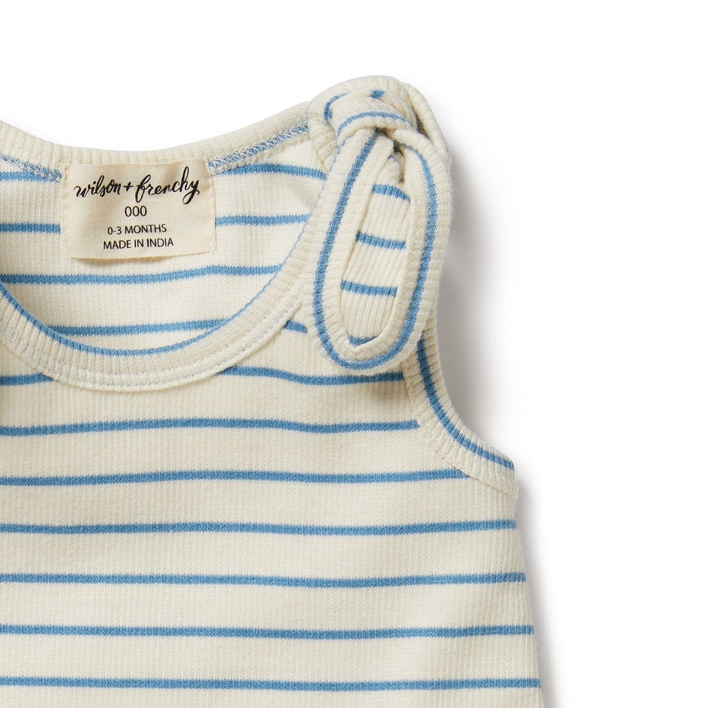 This comfortable rib tank is made with GOTS certified organic cotton and designed with mock ties and a loose fit. Its construction ensures a superior level of softness and a shape that won't change after washing. Perfect for mixing and matching.