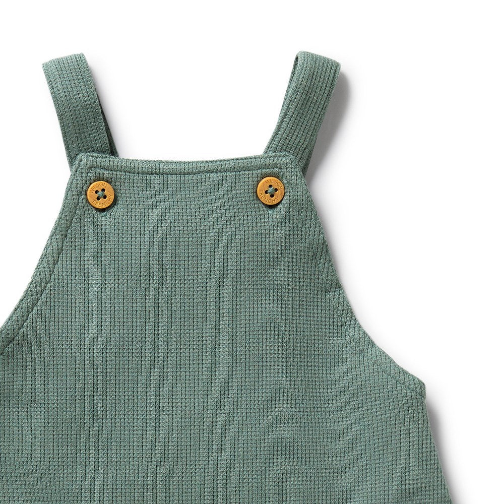 Made from an organic cotton waffle, this baby overall is designed for comfort with a relaxed fit.