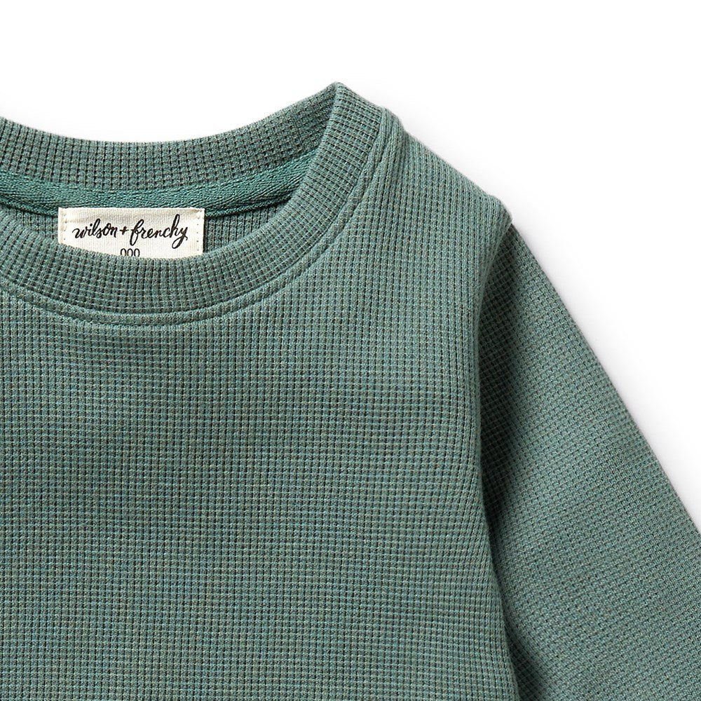 This playful cotton waffle set includes a pre-shrunk, soft washed long sleeved top and full length pant in a relaxed fit. Adjust the ties on the waistband for a perfect fit and enjoy functional pockets, all made from GOTS certified organic cotton free from nasty chemicals.