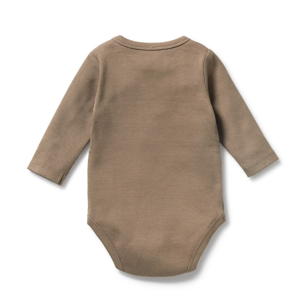 Walnut Organic Rib Long Sleeved Bodysuit