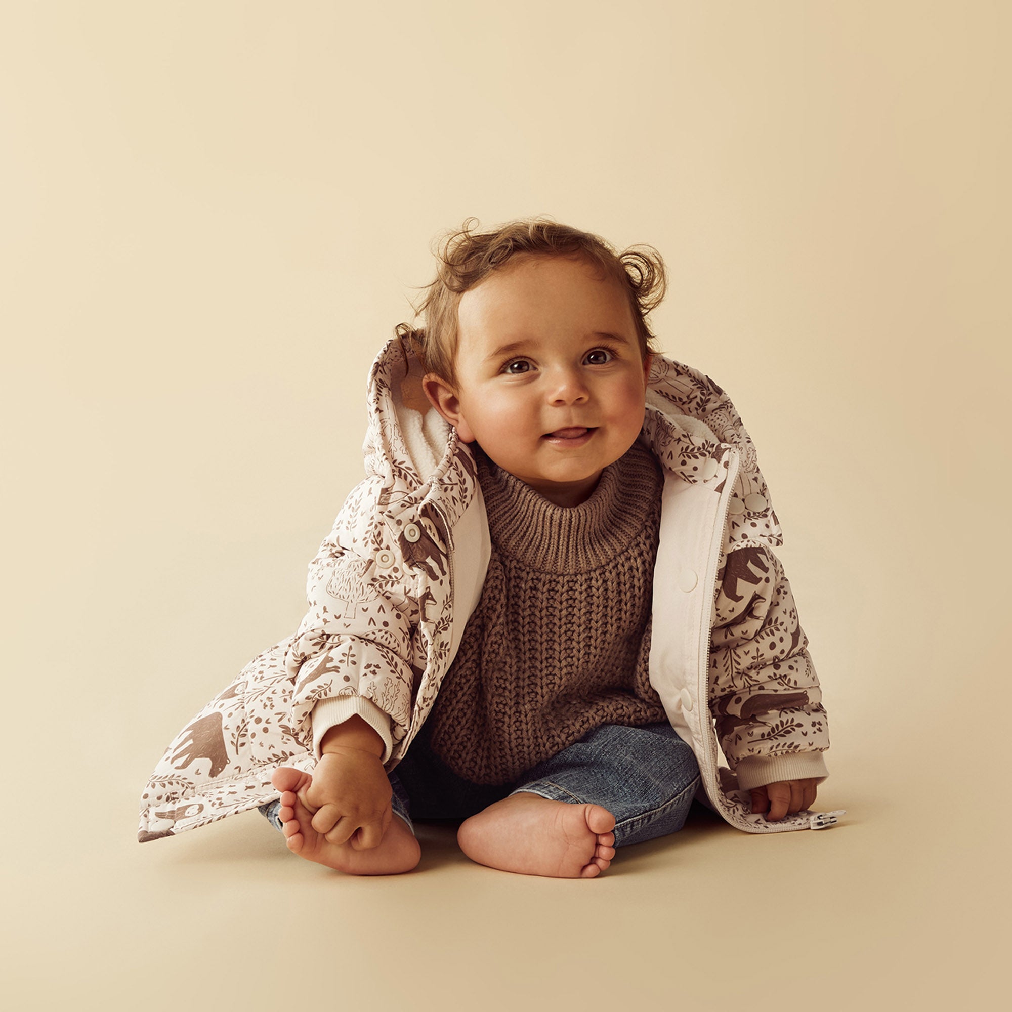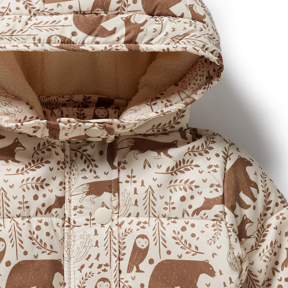 This puffy jacket is perfect for your little ones, keeping them cosy and warm all winter long. With a fully lined interior, hood, and functional pockets, this jacket is both stylish and practical. Plus, it's filled with 100% recycled polyester. Zip through the front with snap buttons for easy dressing.